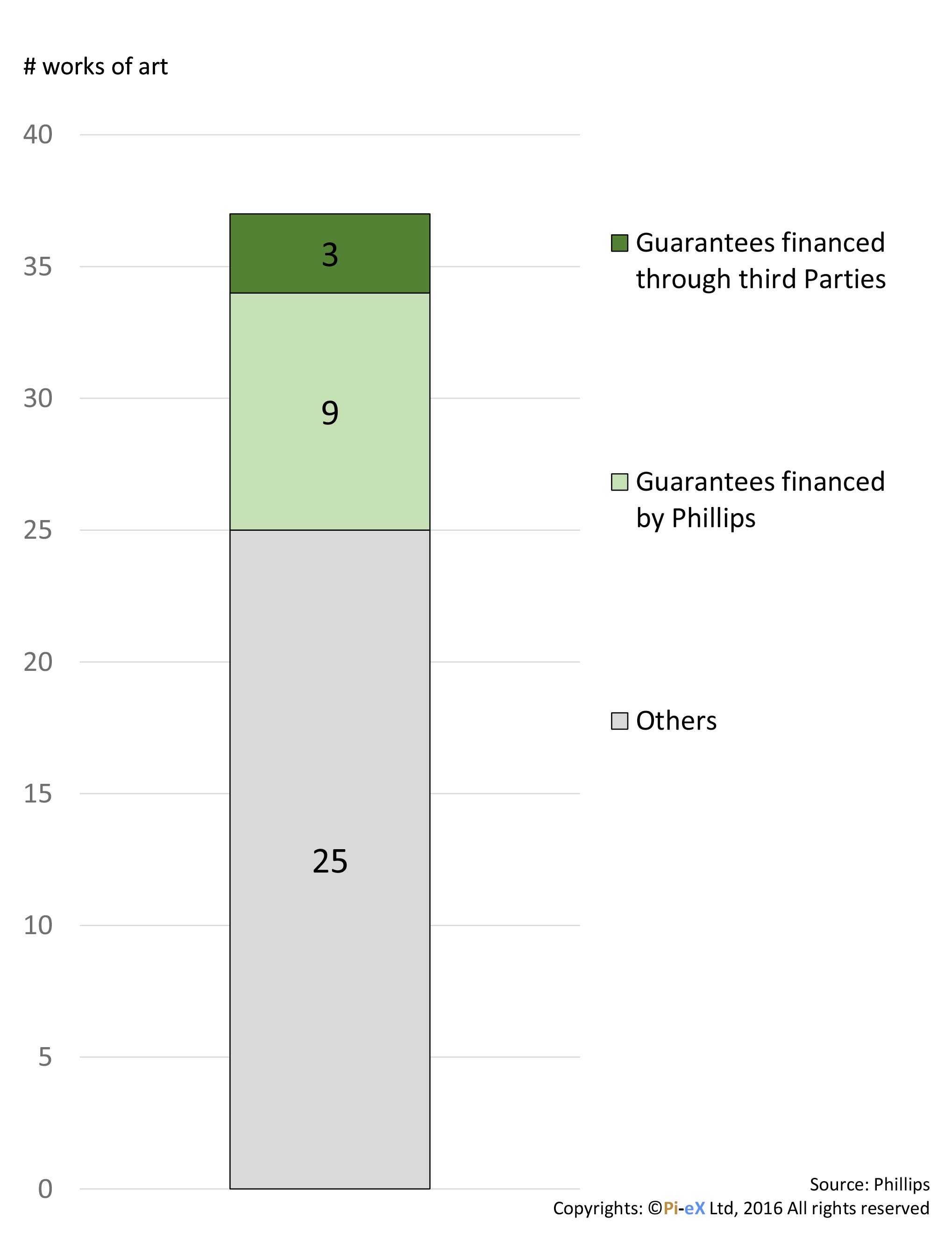 Phillips doesn’t have any ownership interests in this auction. In total, 12 artworks have been guaranteed (more than 30%), including 9 purely by Phillips.